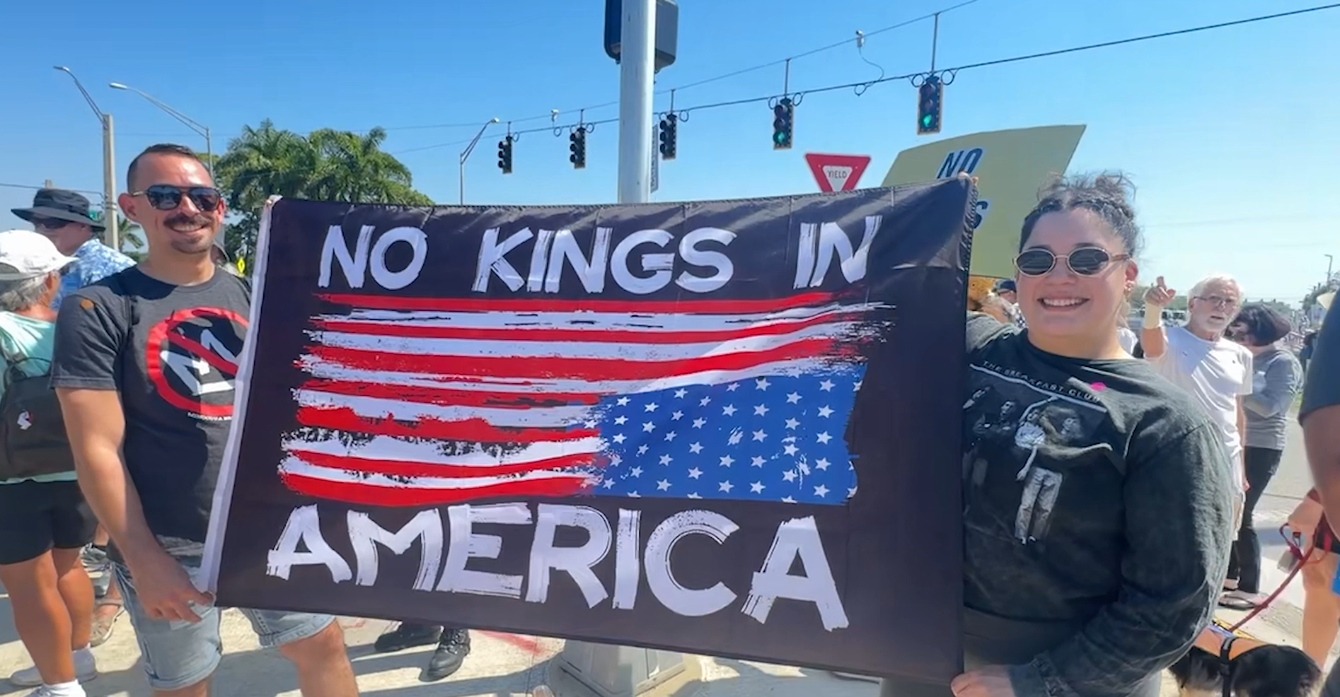 Protesters gathered along the highway starting at 10 a.m. with signs, coolers and chairs until the event ended at around 12 p.m.